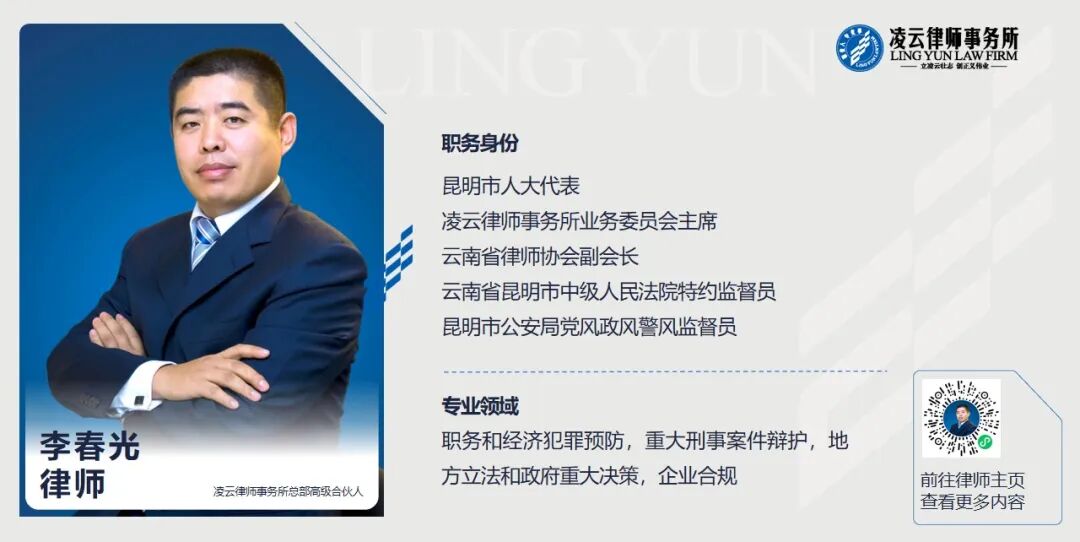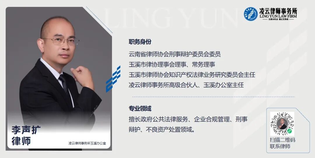 【免责声明】本文观点仅作为交流讨论目的,不可视为云南凌云律师事务所正式法律意见或建议。如您有任何法律问题或需要法律服务,欢迎与本所联系。云南凌云律师事务所对转载、分享的内容、陈述、观点保持中立,不对图文包含内容的真实可靠性或完整性提供任何明示或暗示的保证,图文均仅供读者参考!