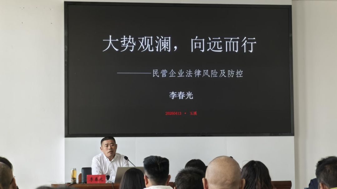 2026年4月13日,在2026年玉溪市年轻一代民营经济人士理想信念教育暨创业创新素质提升培训中,省律师协会副会长、凌云所业委会主席李春光律师应玉溪市工商联邀请,作《民营企业的常见法律风险及防控》专题分享。