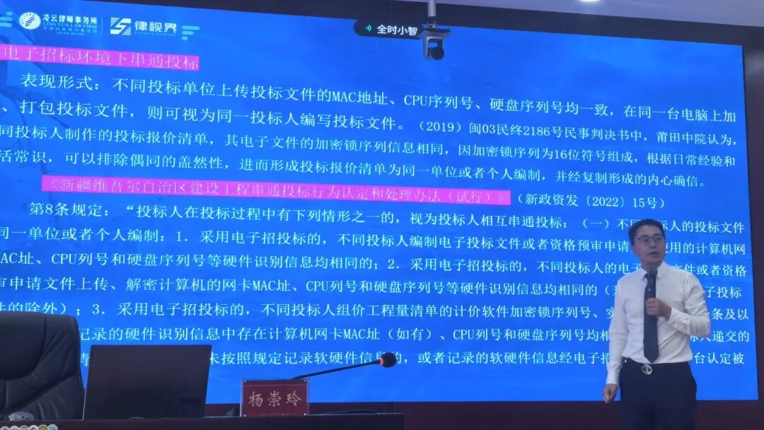 2026年4月17日,凌云律师事务所合伙人会议主席杨崇玲律师应邀参加云南建投第一水利水电建设有限公司“国家安全法治宣传暨招投标与反商业贿赂合规管理”普法培训,开展题为《招投标与反商业贿赂合规管理探析》的专题讲座。本次培训覆盖公司领导班子、职能部门、直管部及基层单位全体管理人员,采用主会场·+·视频分会场形式同步开展,实现全员普法无死角。